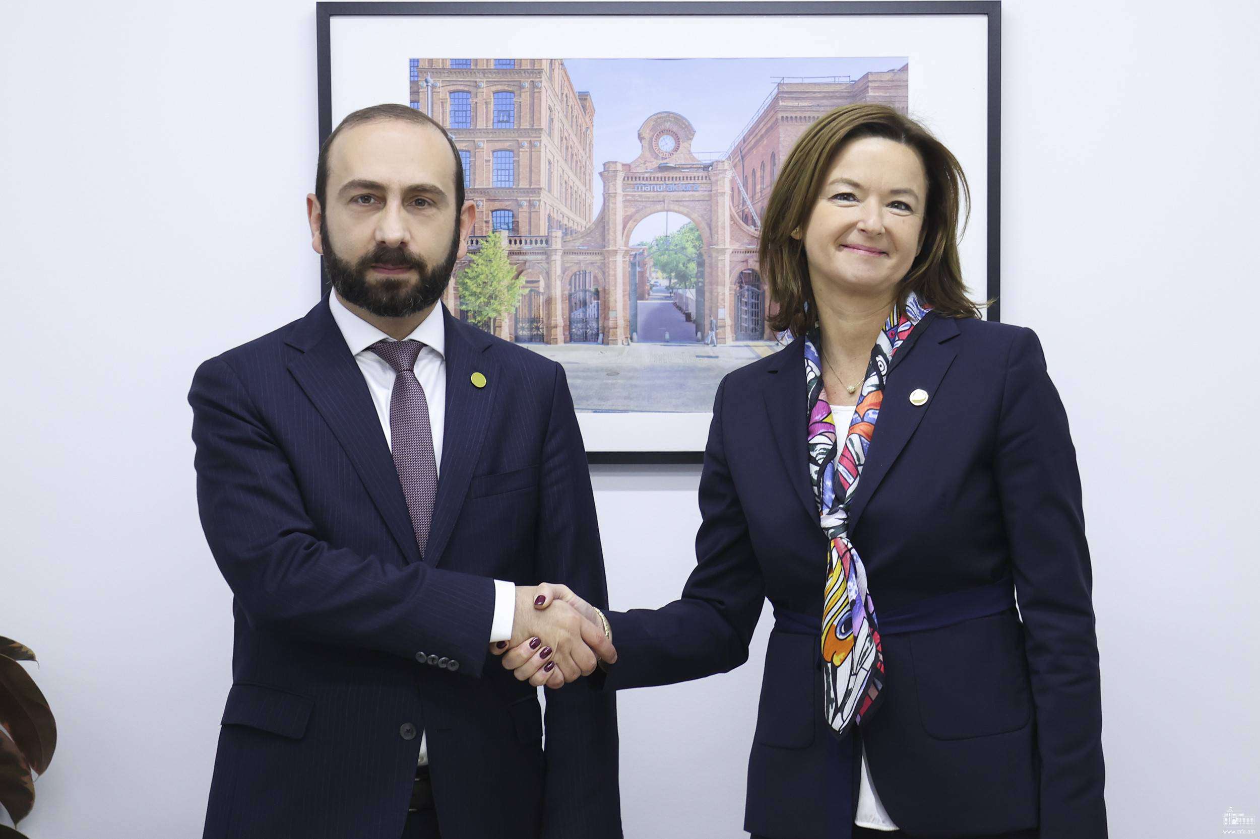 On December 1, within the framework of the OSCE Ministerial Forum in Lodz, the Minister of Foreign Affairs of the Republic of Armenia, Ararat Mirzoyan, had a meeting with the Deputy Prime Minister, Minister of Foreign Affairs of the Republic of Slovenia, Tanya Fajon.
