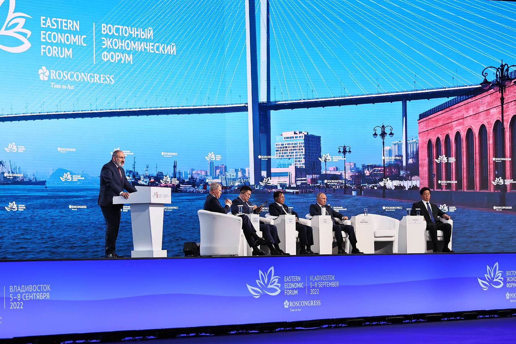 After his speech at the plenary session of the 7th Eastern Economic Forum on the theme "On the road to a multipolar world," the RA Prime Minister answered the questions of journalist Ilya Doronov, who is conducting the forum.