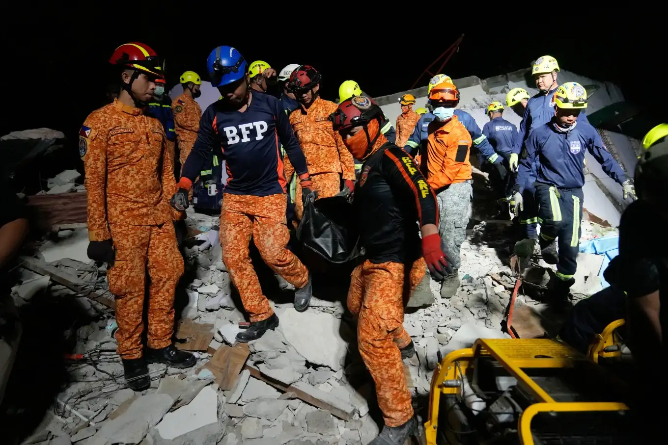 A 6.9-magnitude earthquake struck off the coast of Bogo City in Cebu province, Philippines, on Tuesday evening. The tremors damaged buildings and homes. Rescuers are working at the scene, sifting through the rubble to find survivors and recover bodies. The number of victims and injured is still being determined.