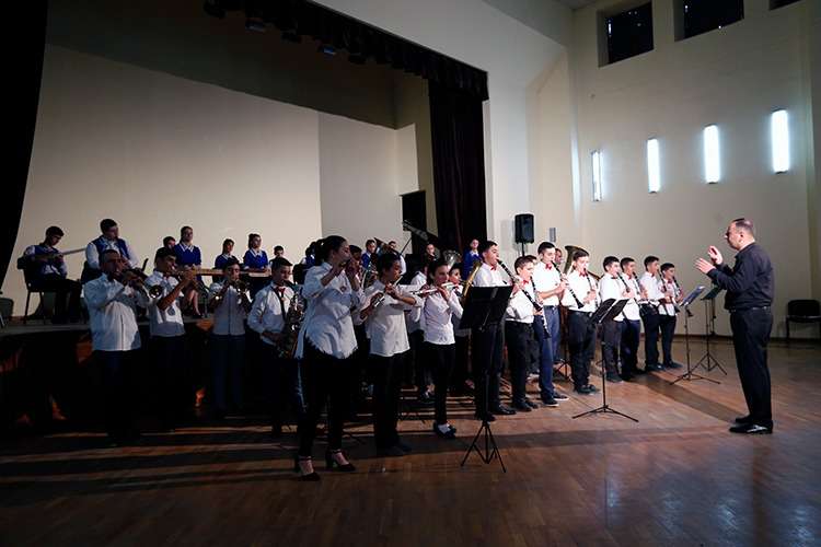 Gyumri "Ani" children's brass band will perform with entirely new musical instruments from now on. The initiative is of Yerevan Municipality. In the framework of the solemn ceremony, Yerevan St. Students of Jrbashyan Music School welcomed the people of Gyumri.