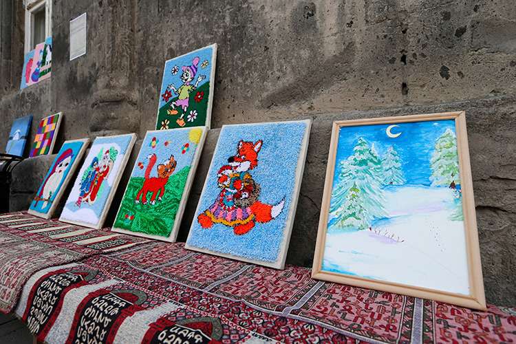 The alley of Abovyan street in Gyumri belonged to the companies and individual masters who produced Yetevan souvenirs. As part of the "Art and Craft Souvenirs" exhibition-fair of souvenirs, about 30 more booths presented types of carpets, carpets, embroidery and lacework, various samples of doll making, pottery, pottery, artistic wood carving, jewelry made of silver and other metals.