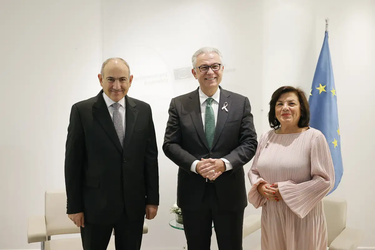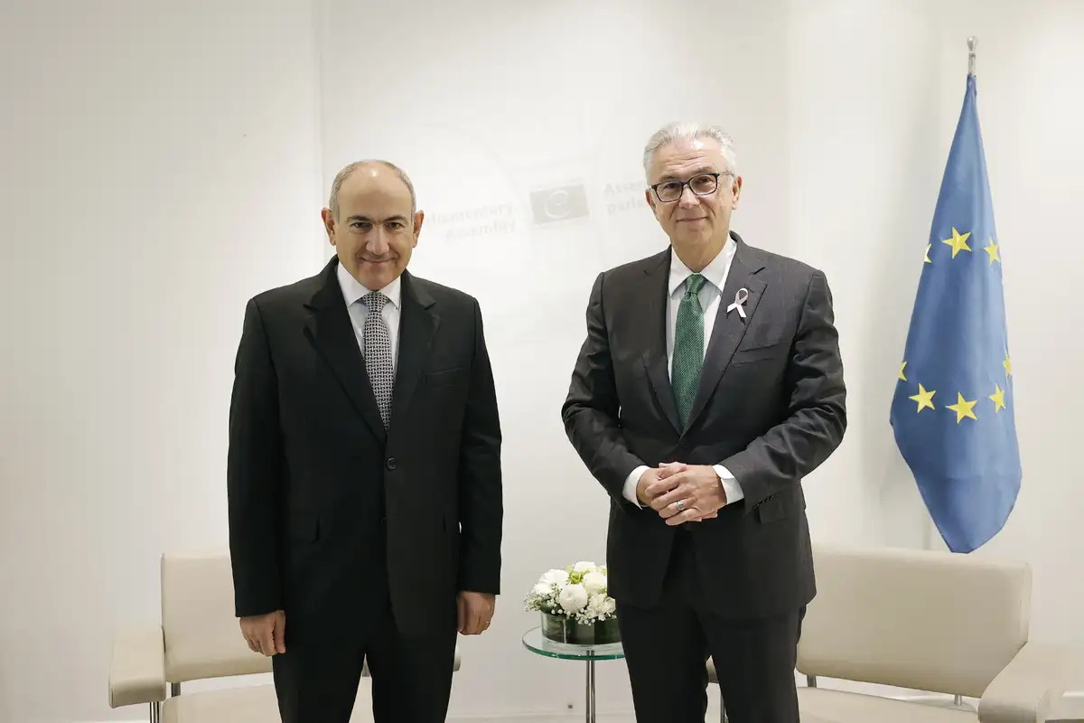 Prime Minister Nikol Pashinyan met with the President of the Parliamentary Assembly of the Council of Europe, Theodoros Roussopoulos, at the Palace of Europe in Strasbourg.