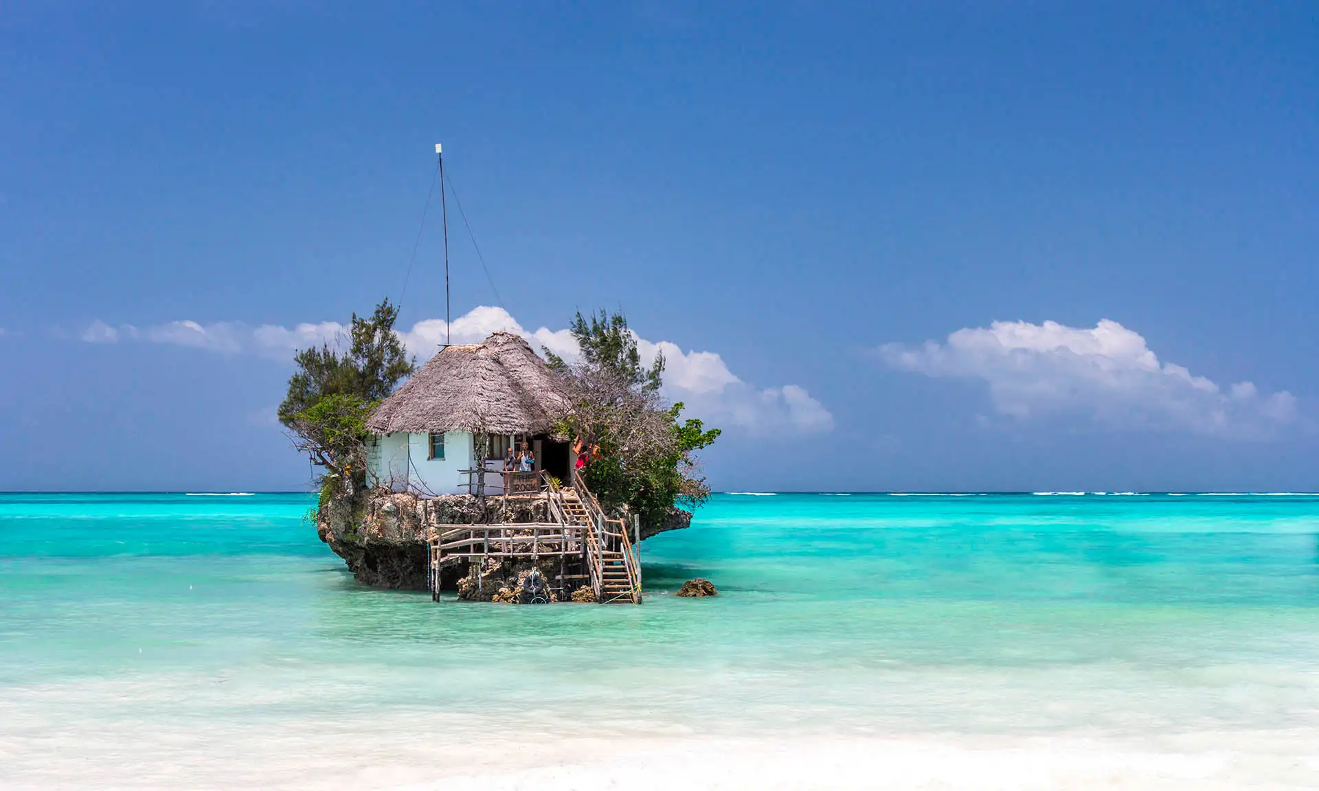 Located on the east coast of Zanzibar, The Rock restaurant is a unique place where you can dine in the middle of the Indian Ocean, on top of a cliff. The small restaurant is considered one of the most photogenic places in Africa. Guests are invited to enjoy a seafood-rich menu and incredible views in a natural setting.