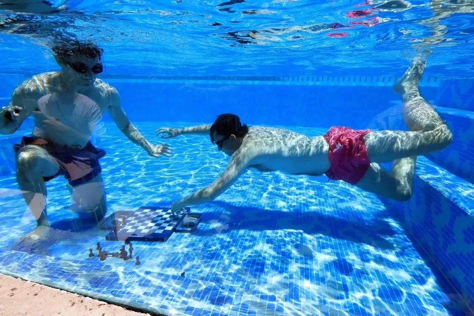 The “diving chess” format was created in 2012 by London-based inventor Etan Ilfeld. Players make moves underwater while holding their breath, combining classical chess calculations with physical endurance.