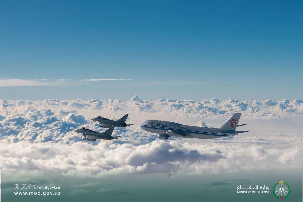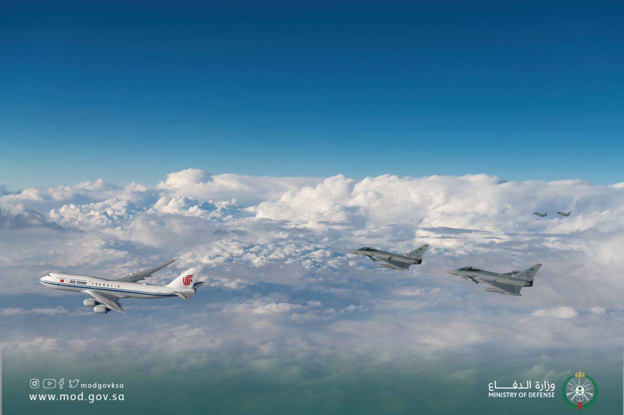 The Eurofighter Typhoon fighters of the Saudi Arabian Air Force in the kingdom's airspace met the Chinese government Boeing 747-8 plane.