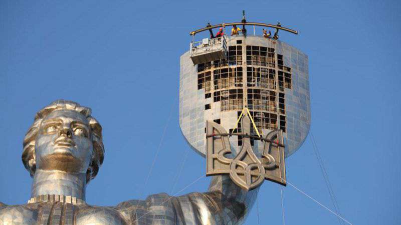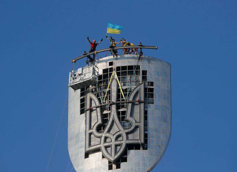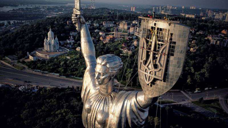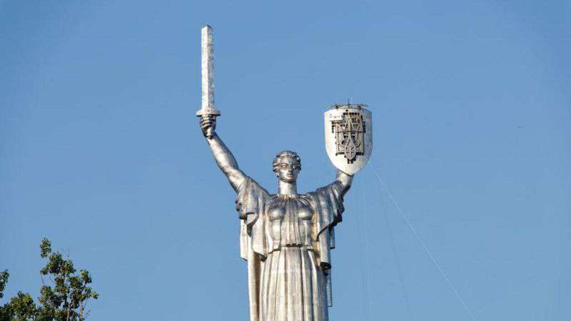 On Sunday morning, a trident, the official symbol of Ukraine, was placed on the shield of the "Motherland" monument in Kyiv.
