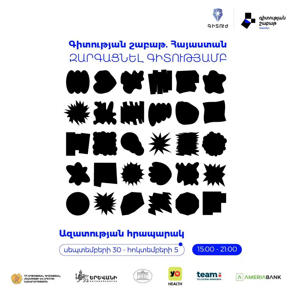 Yerevan Municipality reports that Armenia’s largest science and technology promotion event, “Science Week: Armenia 2025,” will take place from September 30 to October 5.