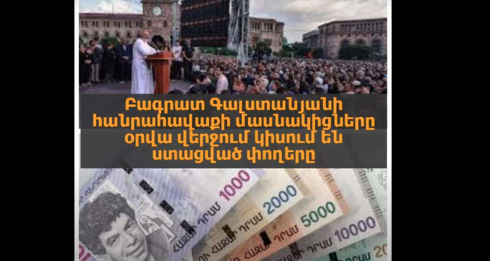 Մասնավորապես, մայիսի 9-ից Երևան քաղաքում շարունակվող հիշատակված հավաքներին մեծ թվով անձանց մասնակցություն ապահովելու նպատակով Վ.Դ.-ն հանդիպել է Գ.Վ.-ին։ Վերջինս Վ.Դ.-ին հանձնարարել է 15.000 ՀՀ դրամ տալ ոմն Սուրիկին, նույնչափ գումար պահել իր մոտ: Բացի այդ, պարզվել է, որ Գ.Վ.-ն Վ.Դ.-ի օժանդակությամբ 5.000-ական ՀՀ դրամներ է փոխանցել ոմն Սուրիկին և գործով չպարզված այլ անձանց՝ ցույցերին մասնակցելու նպատակով։