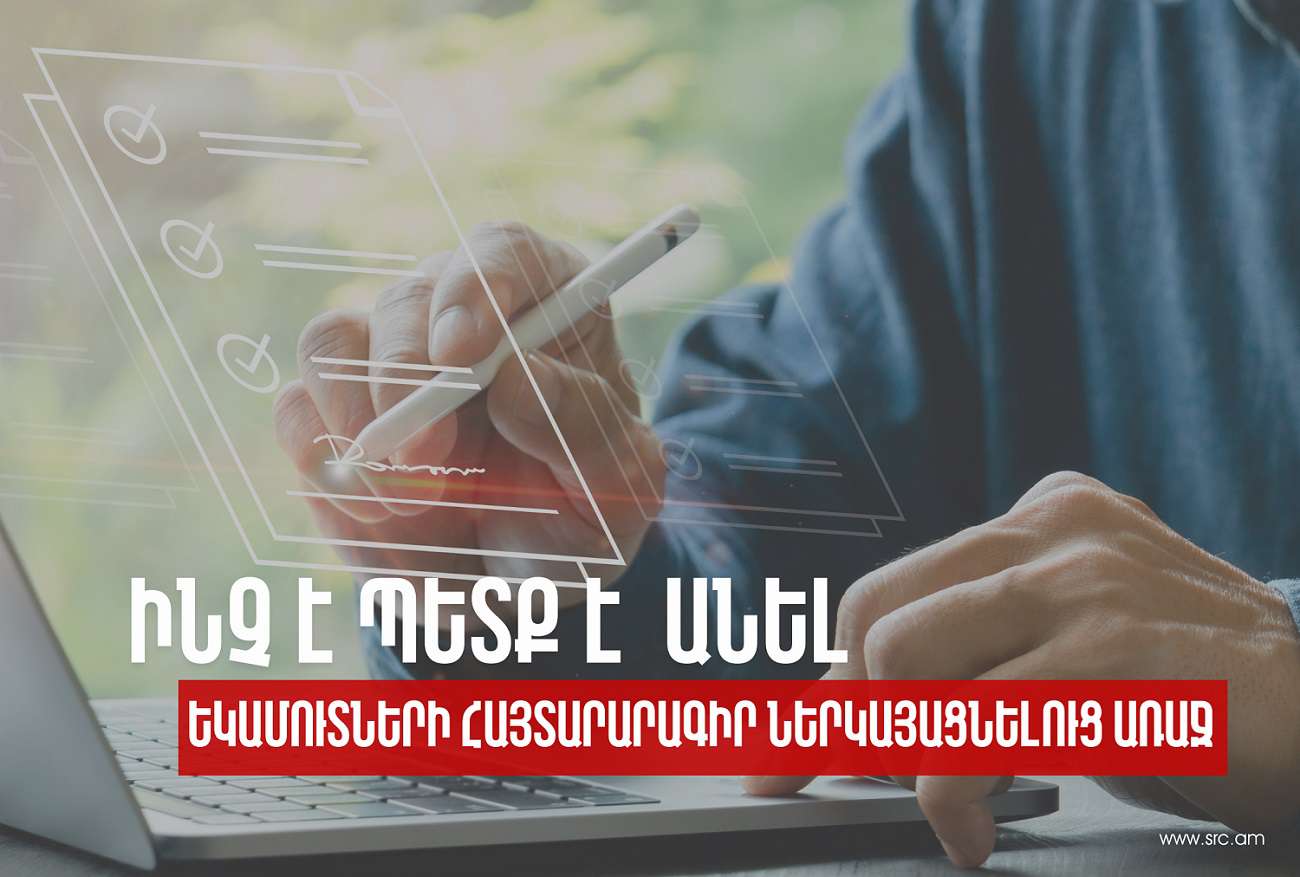 Պետական եկամուտների կոմիտեն հիշեցնում է՝ 2024 թվականին եկամուտների հայտարարագիր ներկայացնող քաղաքացիները հայտարարագիր ներկայացնելու համար նախևառաջ պետք է իրականացնեն անձի նույնականացման գործընթաց և ձեռք բերեն էլեկտրոնային ստորագրություն: Համակարգը կներդրվի «Ես եմ» hարթակում, որտեղ անձի նույնականացման համար գործում է երկու տարբերակ՝ բջջային հեռախոսի միջոցով կամ էլեկտրոնային կրիչ պարունակող նույնականացման քարտով։