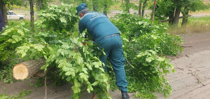 Աբովյան փողոցում ծառը շրջվել է ավտոմեքենաների վրա՝ վնասելով նաև հարակից շինության պատը