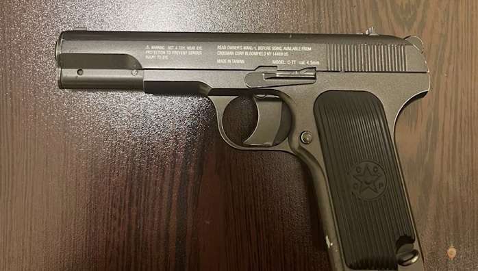 Բաժնում խուզարկությամբ նրանցից մեկի պայուսակում հայտնաբերվել են 9 մմ տրամաչափի թմբուկավոր ատրճանակ՝ լիցքավորված 6 փամփուշտով, և 14 փամփուշտ, իսկ մյուսի մոտից՝ 0,60 գրամ դեղնականաչավուն զանգված: