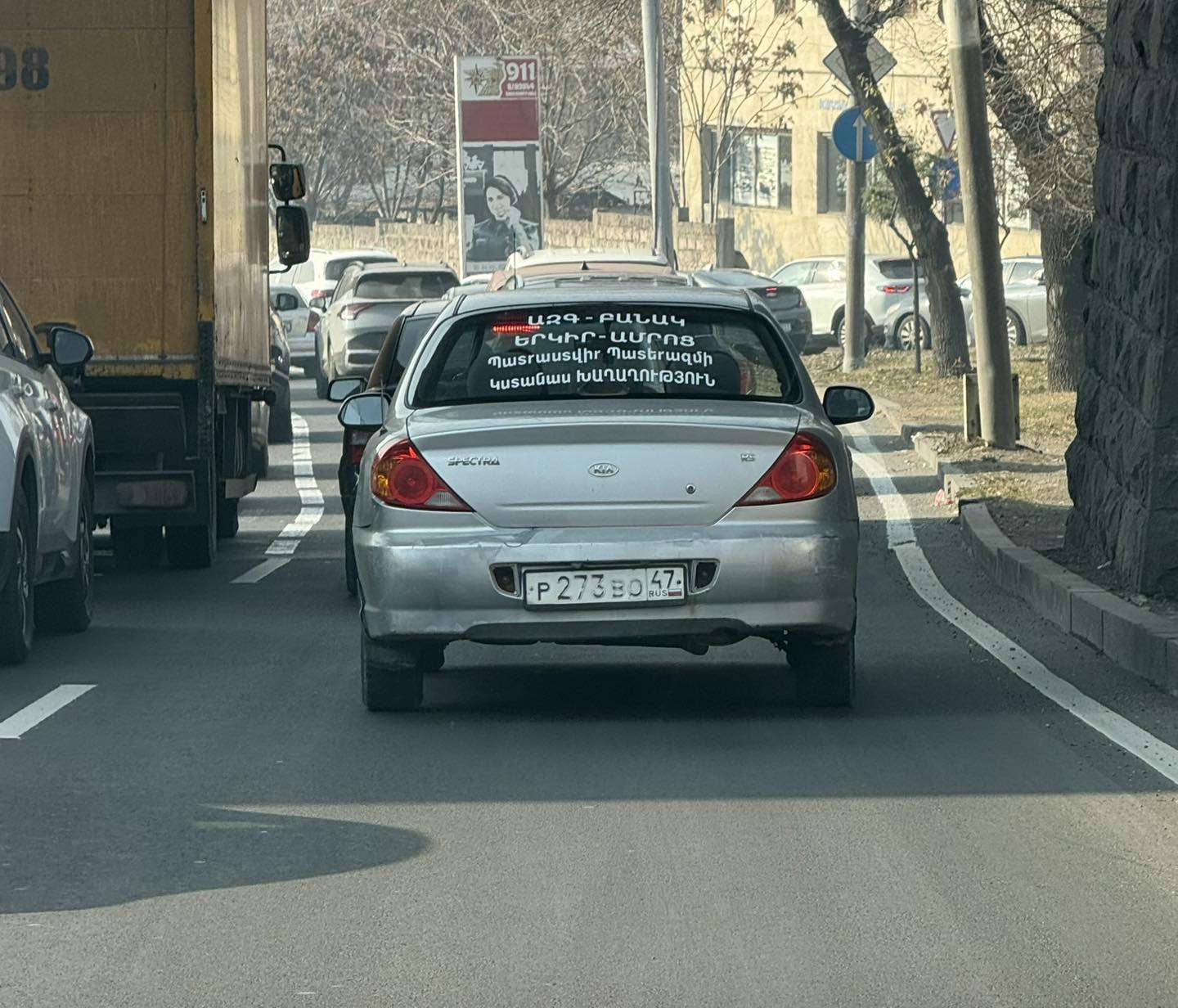 «Խաղաղության շուրջ երեկվա բանավեճից հետո, այսօր կեսօրին մեքենա վարելիս ականատես եղա մի իրավիճակի. կենացային հայրենասիրությամբ «համեմված» և մաշված ռուսական համարներով մեքենան խախտում է երթևեկության կանոնները՝ հատելով հոծ գիծը։