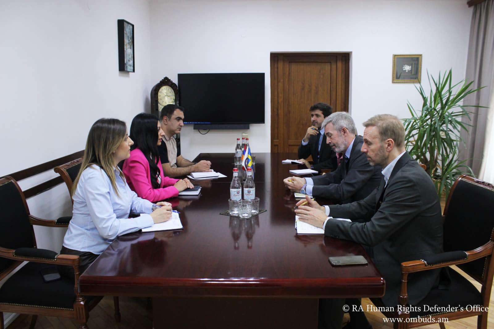 Մարդու իրավունքների պաշտպան Անահիտ Մանասյանը հոկտեմբերի 14-ին ընդունել է Հայաստանի Հանրապետությունում Շվեդիայի Թագավորության արտակարգ և լիազոր դեսպան Պատրիկ Սվենսոնի գլխավորած պատվիրակությանը: