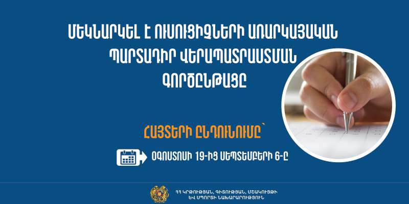 Մեկնարկել է ուսուցիչների առարկայական պարտադիր վերապատրաստման գործընթացը՝ համաձայն ՀՀ կրթության, գիտության, մշակույթի և սպորտի նախարարի 2024 թվականի օգոստոսի 9-ի «Ուսուցիչների առարկայական պարտադիր վերապատրաստման ծրագրերի և վերապատրաստող երաշխավորված կազմակերպությունների ցանկը» հաստատելու մասին N 1445-Ա/2 հրամանի: