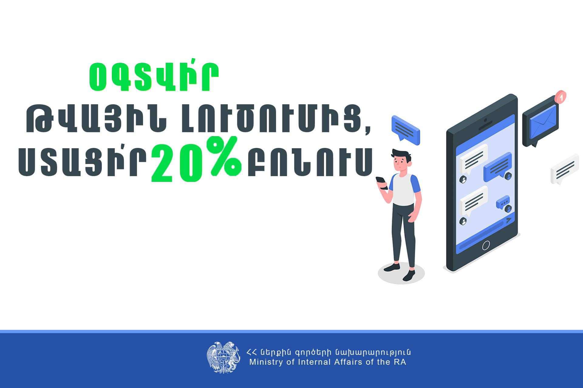 ՆԳՆ-ն հիշեցնում է՝ Roadpolice.am -ով ծանուցումն ակտիվացնելու դեպքում տուգանքը կվճարեք 20% պակաս