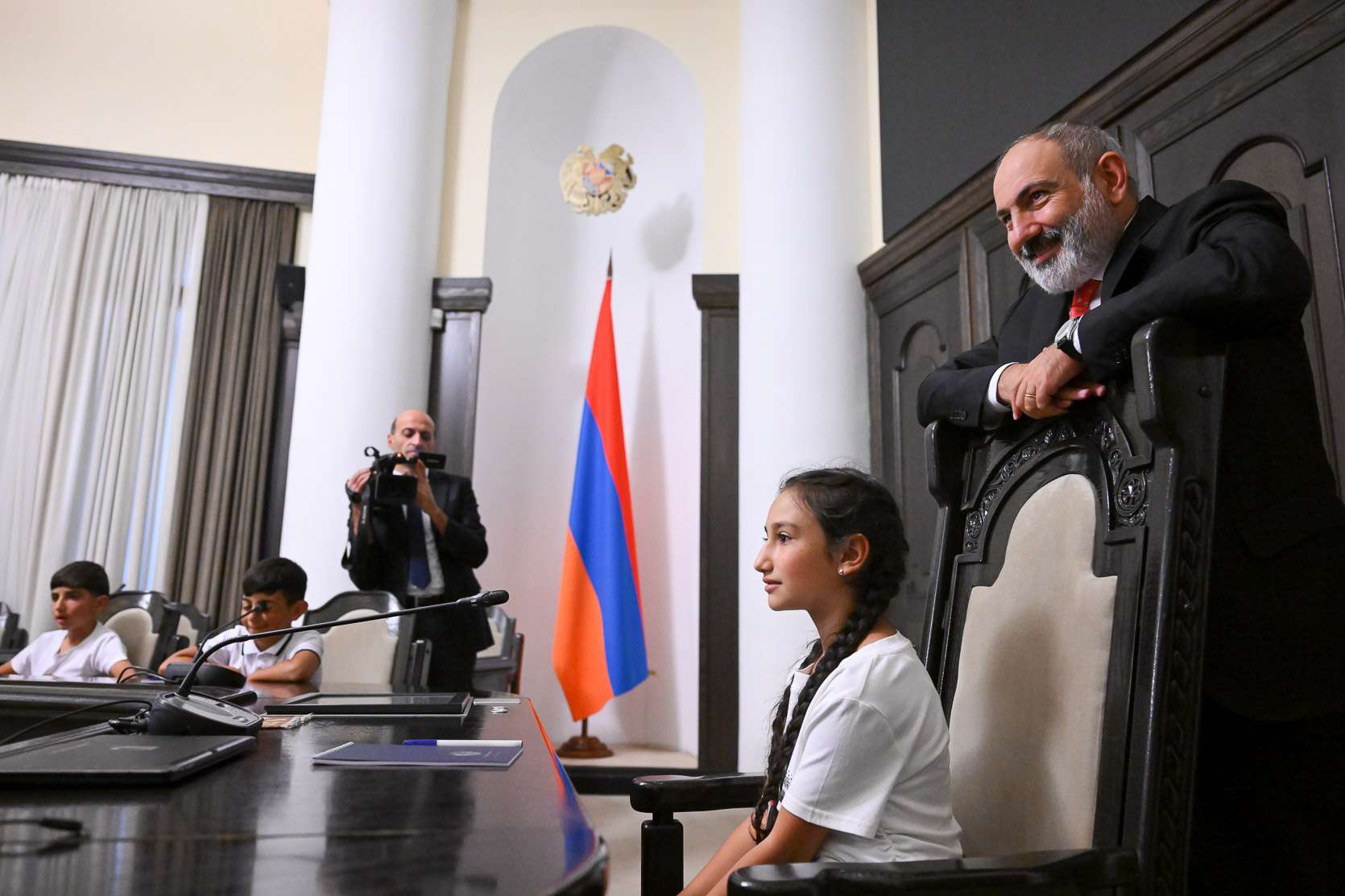 Վարչապետ Նիկոլ Փաշինյանը Կառավարությունում հյուրընկալել է Շիրակի մարզի Սառնաղբյուր գյուղի Մաթևոս Մադաթյանի անվան միջնակարգ դպրոցի 4-րդ «Ա» և «Բ» դասարանների աշակերտներին՝ վերջիններիս խնդրանքով: