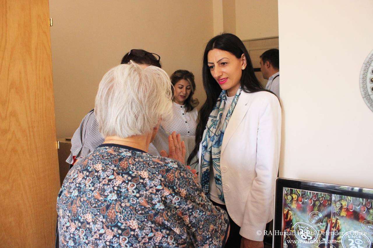 Անահիտ Մանասյանը կենտրոնի տնօրեն Արթուր Մելքոնյանի ուղեկցությամբ շրջայց է իրականացրել տարածքով, ծանոթացել շահառուների կենցաղային և սանիտարահիգիենիկ պայմաններին, նրանց տրամադրվող սննդին, բժշկական օգնության կազմակերպմանը և այլն։