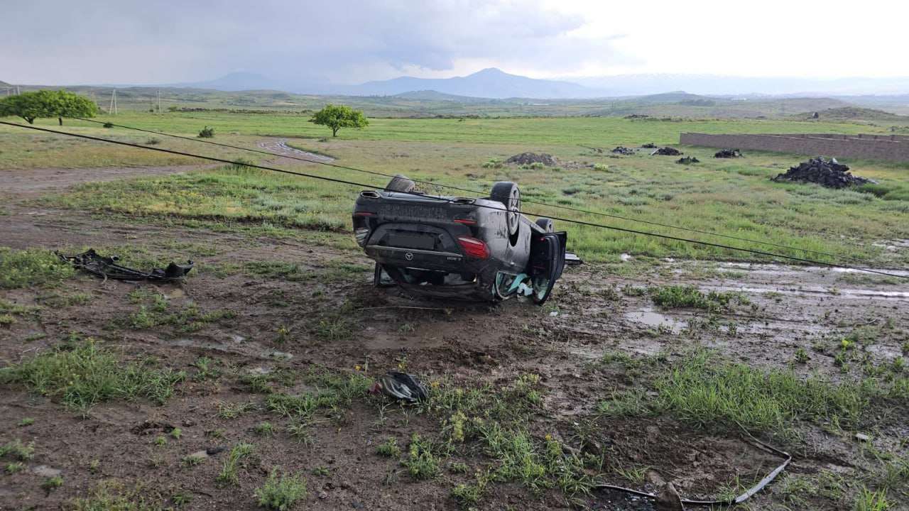 Եղվարդ-Երևան ավտոճանապարհին մեքենան բախվել է էլեկտրասյանը և գլխիվայր շրջվել