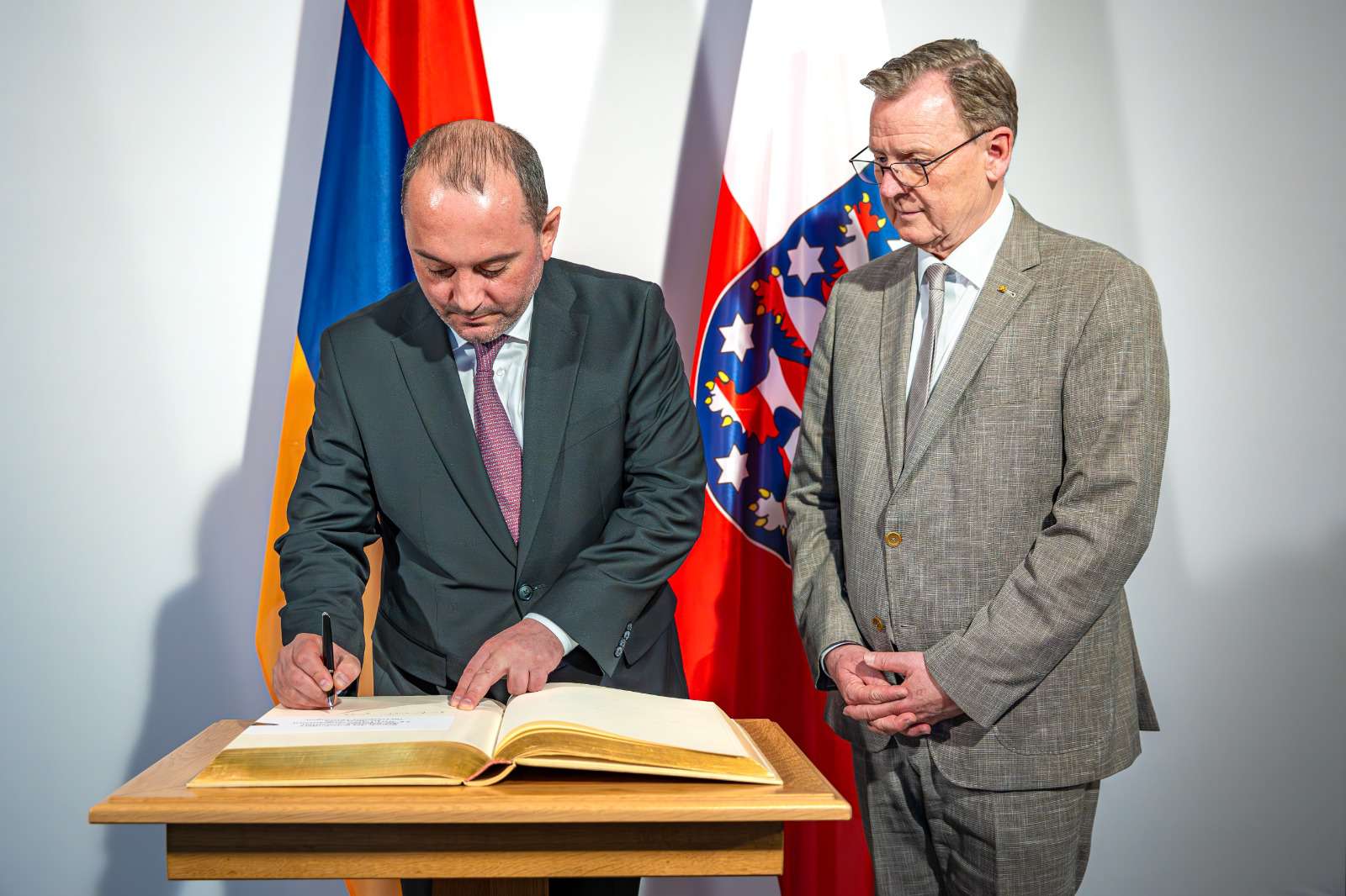 Գերմանիայում ՀՀ դեսպան Վիկտոր Ենգիբարյանի այցը Թյուրինգիա երկրամաս։ Այցի ընթացքում ՀՀ դեսպանը հանդիպում է ունեցել Թյուրինգիա երկրամասի վարչապետ Բոդո Ռամելովի հետ։