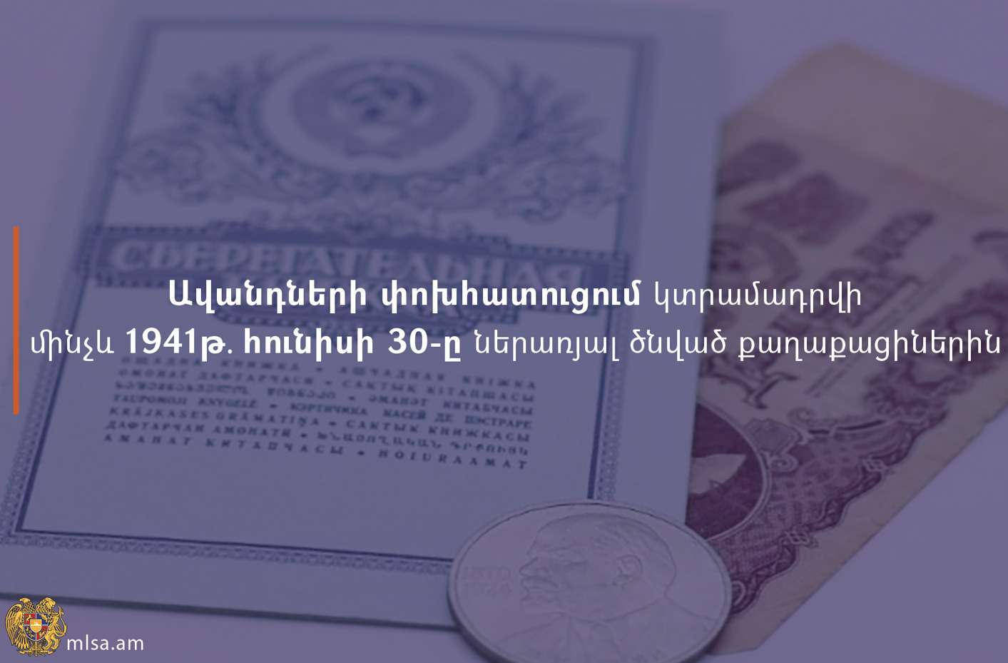 Ավանդների փոխհատուցում կտրամադրվի մինչև 1941 թ․ հունիսի 30-ը ծնված քաղաքացիներին