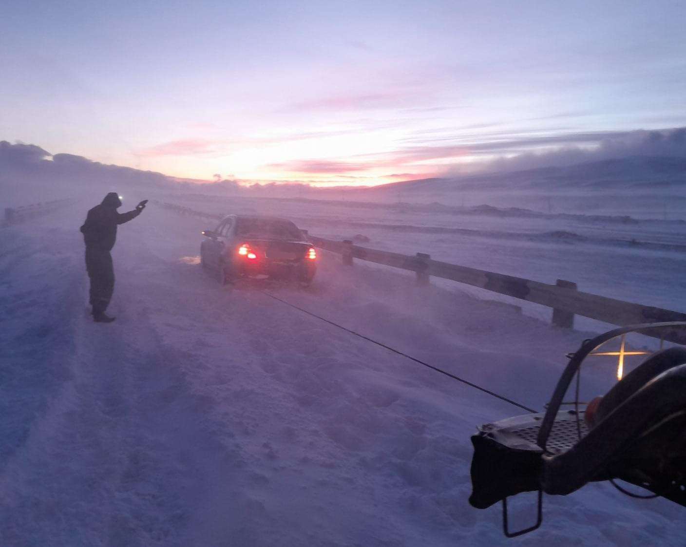 Գեղադիր գյուղի սկզբնամասում ավտոմեքենան դուրս է եկել ճանապարհի երթևեկելի հատվածից և արգելափակվել ձյան մեջ