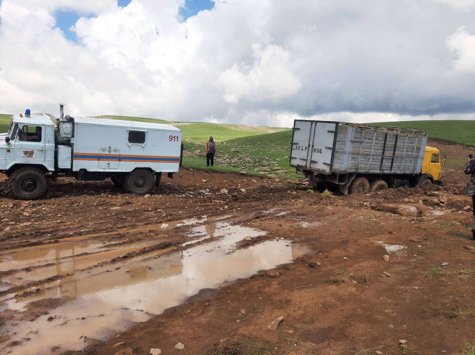 Եղեգնաձորում MAN կցորդիչով բեռնատարն արգելափակվել է ցեխակույտում