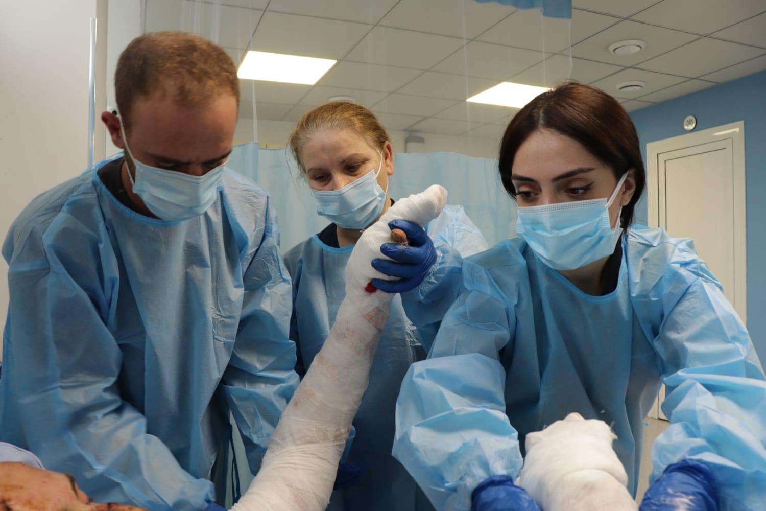 Նկարում «Այրվածքաբանության և մաշկաբանության ազգային կենտրոնի» և «Սուրբ Գրիգոր Լուսավորիչ» ԲԿ-ի մեր երիտասարդ բժիշկներ են` օրուգիշեր պայթյունից տուժած մեր հայրենակիցների կողքին։