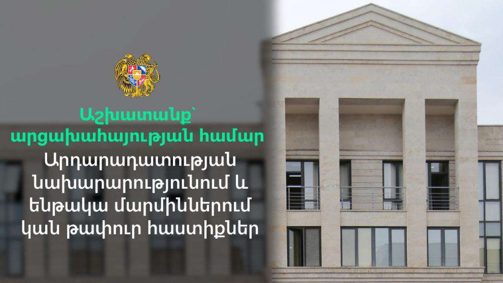 Աշխատանք՝ արցախահայության համար. Արդարադատության նախարարությունում և ենթակա մարմիններում կան թափուր հաստիքներ