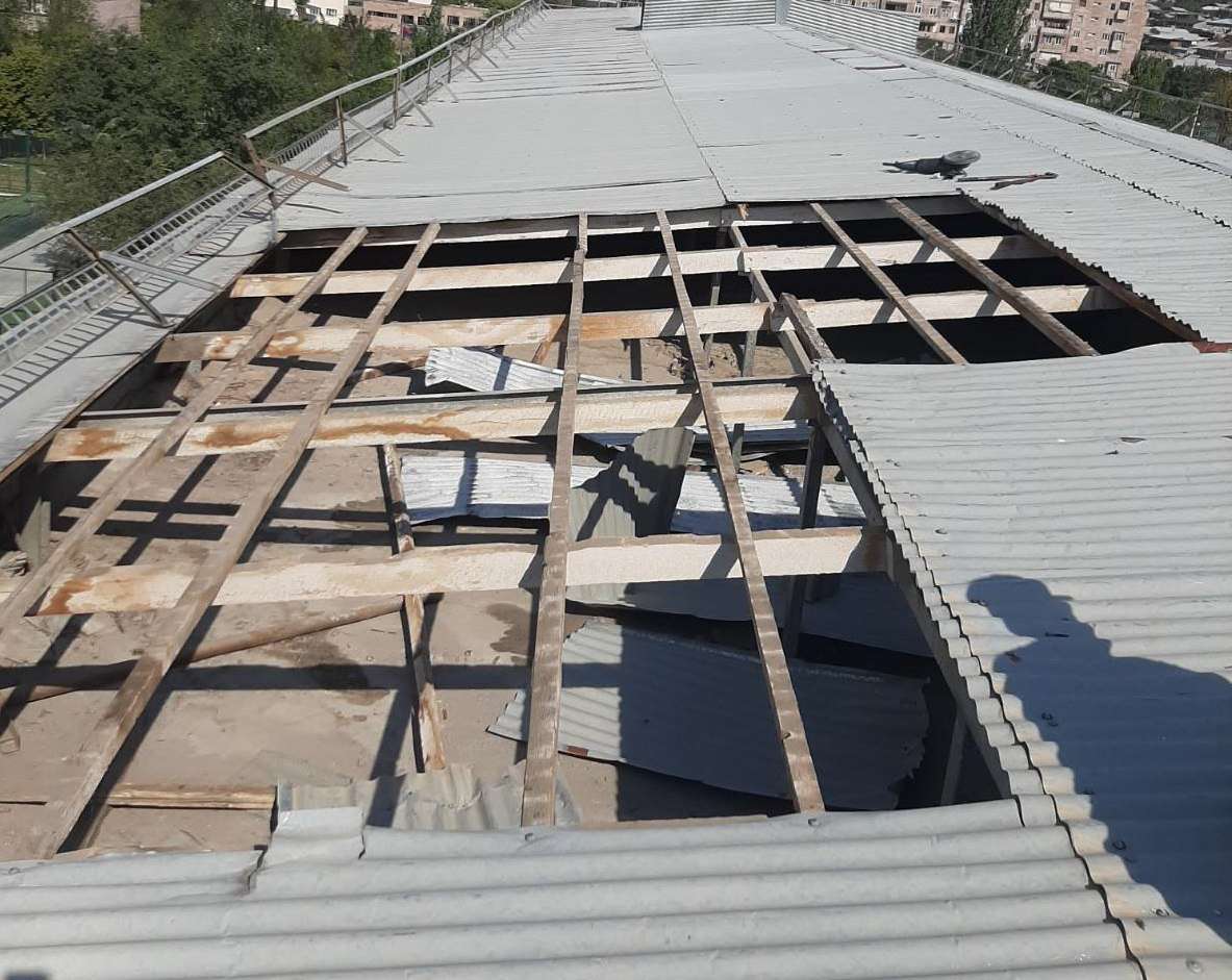 Փրկարարներն ապամոնտաժել են տանիքի թիթեղյա ծածկը
