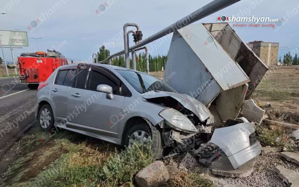 Երևան-Աշտարակ ավտոճանապարհին Nissan-ը կոտրել է «Գազպրոմ Արմենիա»-ի գազի բաշխիչ կայանը