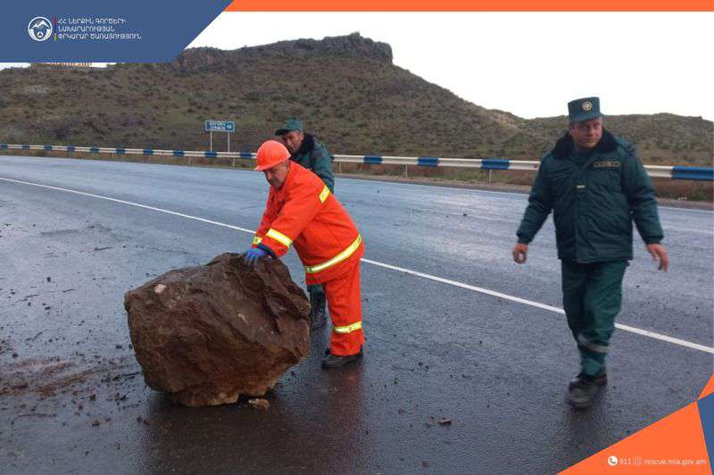 Երևան-Մեղրի ավտոճանապարհի 122-րդ կմ-ին քարը (մոտ 0,6 խմ) լանջից գլորվել և հայտնվել է ավտոճանապարհի երթևեկելի հատվածում՝ դարձնելով այն միակողմանի երթևեկելի։