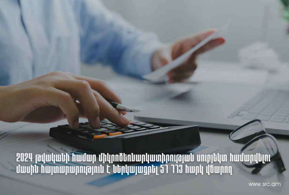 Ամփոփվել է 2024 թվականի համար միկրոձեռնարկատիրության սուբյեկտ համարվելու վերաբերյալ հայտարարություն ներկայացրած հարկ վճարողների մասին տեղեկատվությունը: