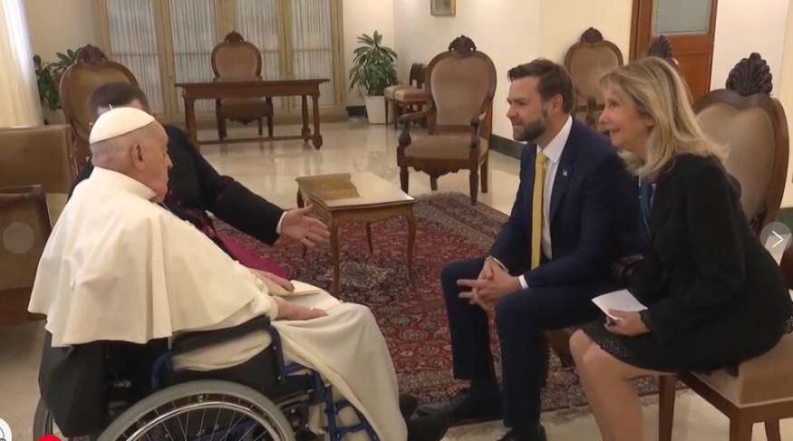88-ամյա պապը ԱՄՆ-ի կաթոլիկ փոխնախագահին նվիրել է երեք մեծ շոկոլադե ձու՝ Վենսի երեք փոքր երեխաների համար, որոնք ներկա չեն եղել, նաև՝ Վատիկանի փողկապ։