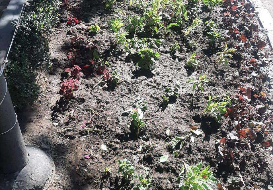 Ժամերի ընթացքում ծաղկանոցները վերածվել են տրորված տարածքների։ Նման տեսարան է Մաշտոցի պողոտայի բոլոր ծաղկանոցներում։