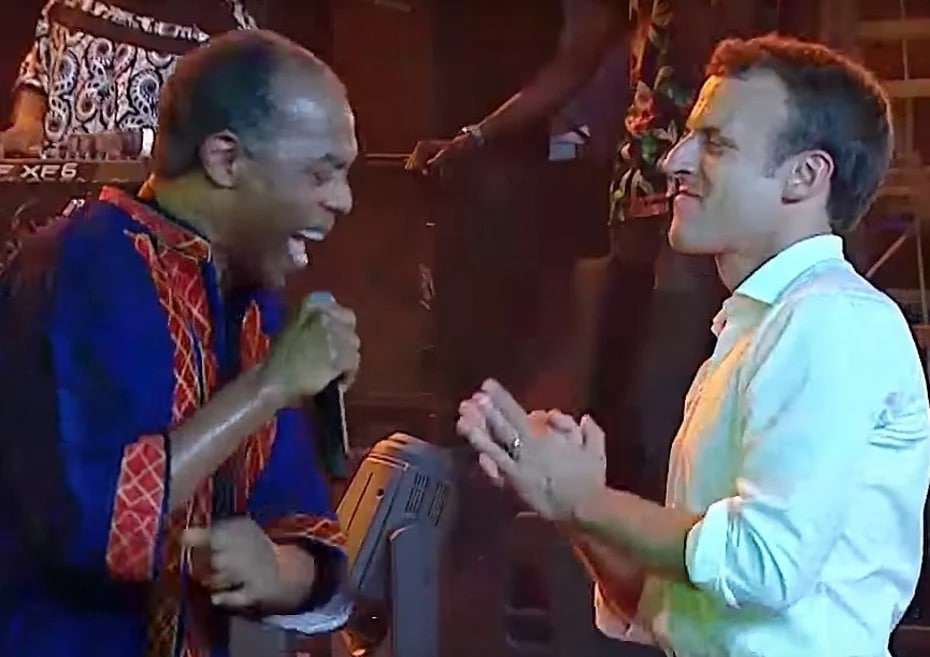 Մի անգամ Լագոսում կայացած համերգի ժամանակ, ուր քաղաքական գործիչը այցելել էր 2018 թվականին, նրան բառացիորեն սեղանից բեմ քաշեց նիգերիացի երաժիշտ, աֆրոբիթ ժանրի երգահան Ֆեմի Կուտինը: Մակրոնն ակնհայտորեն շփոթված էր և պատրաստ չէր իմպրովիզացիայի։