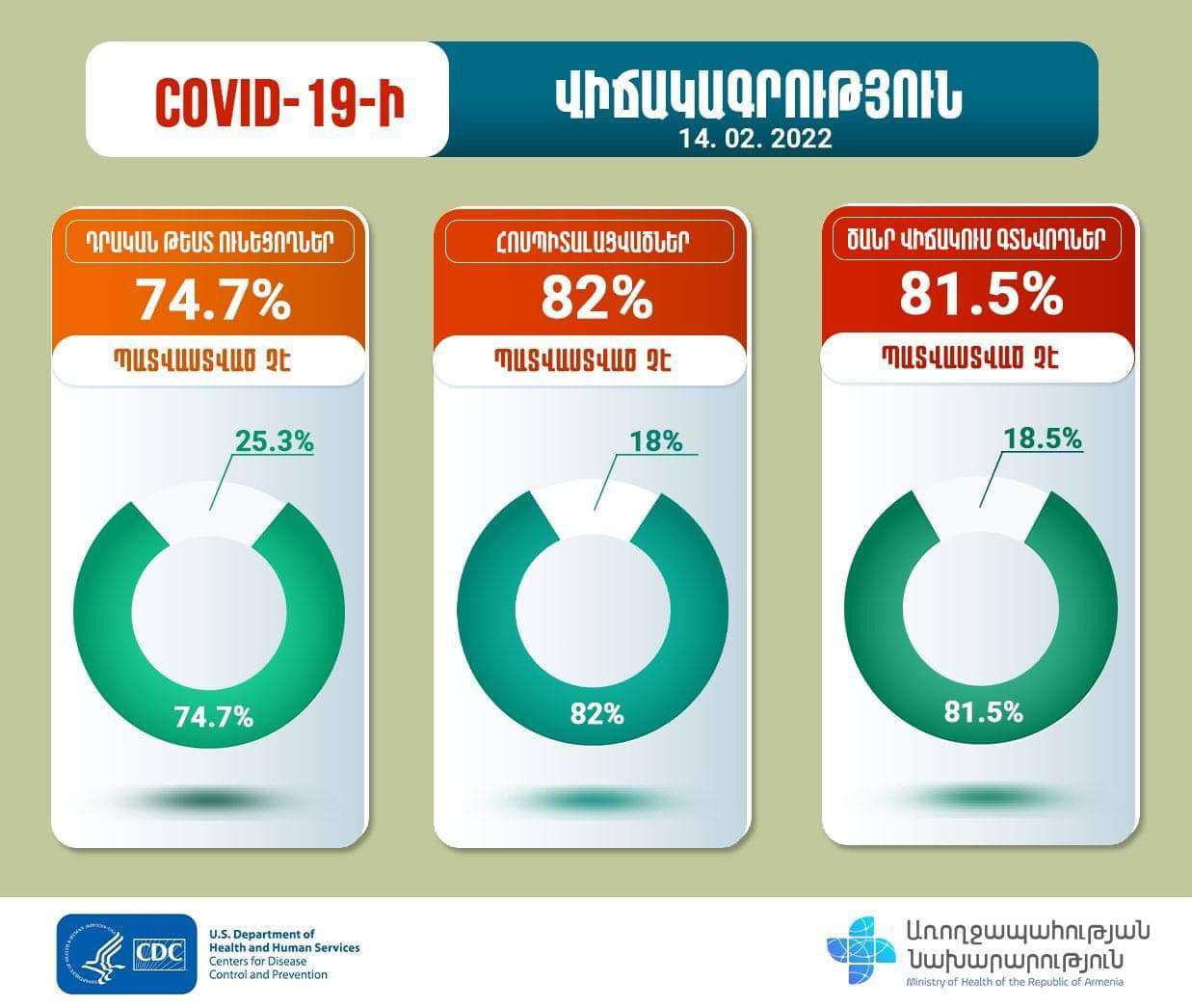 Ըստ նախարարության, պատվաստված չի եղել հոսպիտալացվածների 82%-ը, ծանր վիճակում գտնվողների 81,5%-ը: