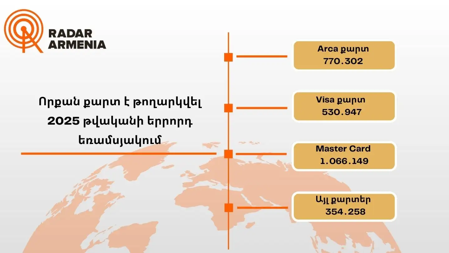 Radar Armenia-ն ներկայացնում է, թե 2025 թվականի երրորդ եռամսյակում Հայաստանում որքան բանկային քարտ է թողարկվել.