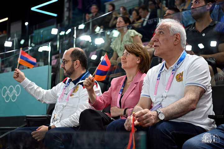 Աշխատանքային այցով Փարիզում գտնվող նախագահ Վահագն Խաչատուրյանը ներկա է գտնվել մարմնամարզիկ Արթուր Դավթյանի մրցելույթին։