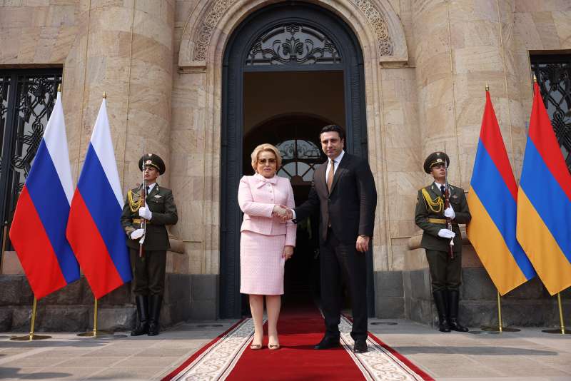 Ալեն Սիմոնյանը շնորհակալություն է հայտնել Վալենտինա Մատվիենկոյին Հայաստան կատարած այցի համար` նշելով, որ նման փոխադարձ այցերը կարևոր են երկկողմ հարաբերությունների զարգացման տեսանկյունից՝ մասնավորապես ընդգծելով այն հանգամանքը, որ այցը տեղի է ունենում Հայրենական մեծ պատերազմի հաղթանակի հոբելյանական 80-ամյակի համատեքստում: