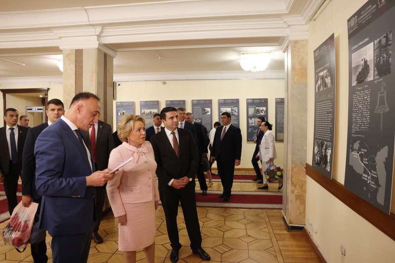 Ալեն Սիմոնյանն ու Վալենտինա Մատվիենկոն շրջել են նաև ԱԺ շենքում ու մասնակցել «Ճանապարհ դեպի Սանահին: Մեկ մանկատան պատմություն» խորագրով ցուցահանդեսին, որի նյութերը տրամադրվել են Սանկտ Պետերբուրգի մշակույթի կոմիտեի և «Լենինգրադի պաշտպանության ու շրջափակման պետական հուշահամալիր» թանգարանի կողմից: