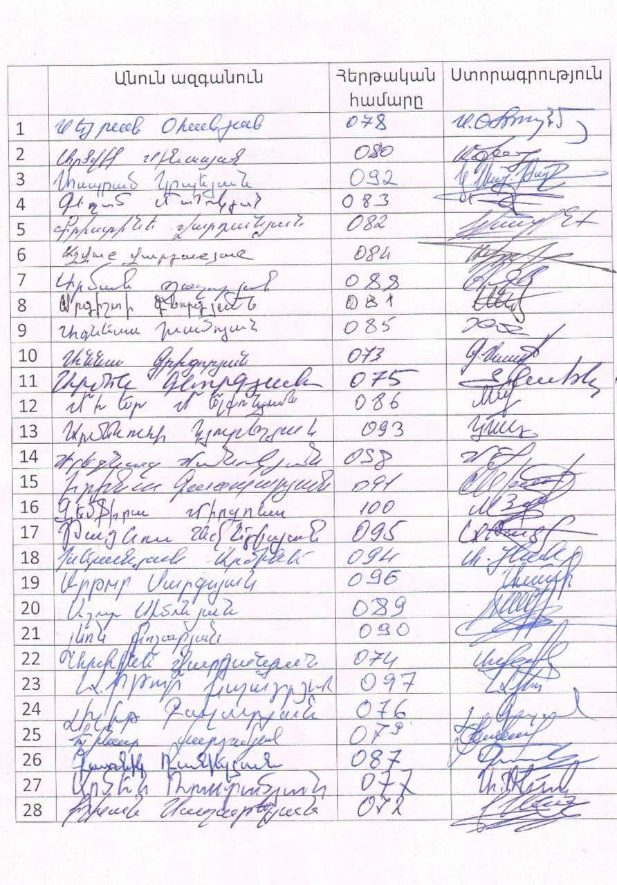 «Հայաստան» խմբակցության ղեկավար Սեյրան Օհանյանը հրապարակել է խմբակցության բոլոր 28 պատգամավորների ստորագրությունները վարչապետ Նիկոլ Փաշինյանին իմպիչմենթի ենթարկելու համար։