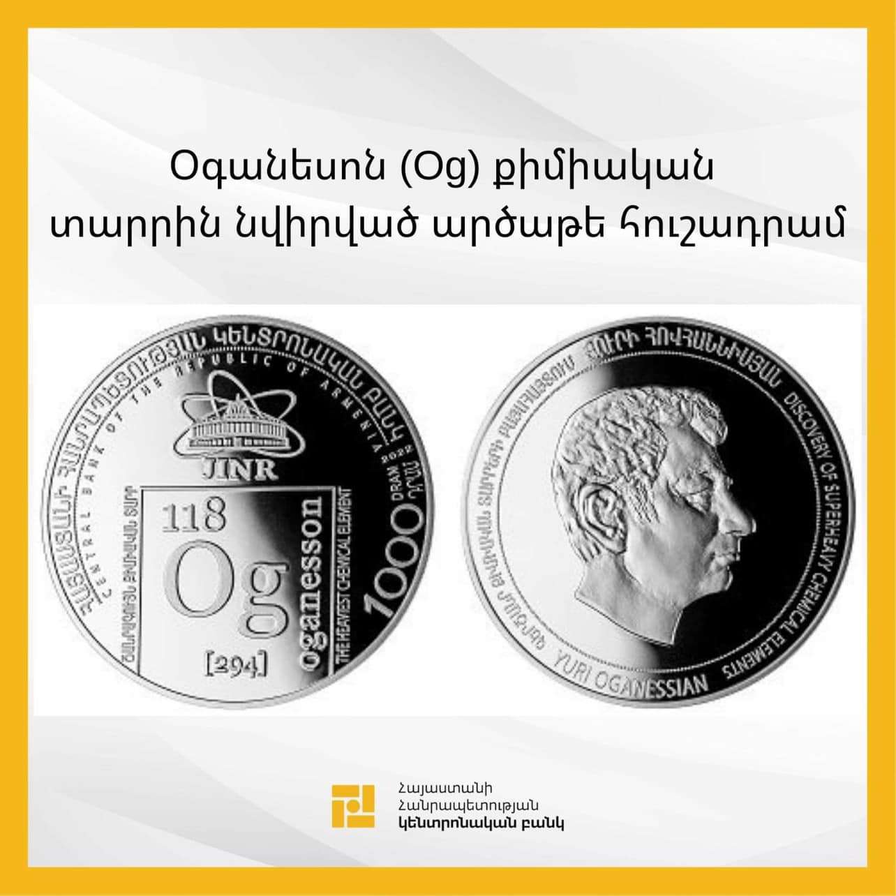 Օգանեսոն (Og) քիմիական տարրին նվիրված հուշադրամ
