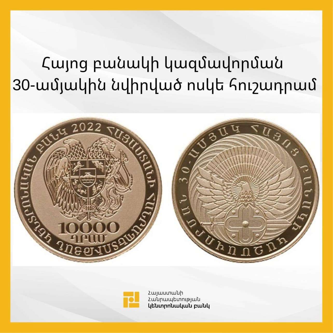 Հայոց բանակի կազմավորման 30-ամյակին նվիրված ոսկե և արծաթե հուշադրամներ