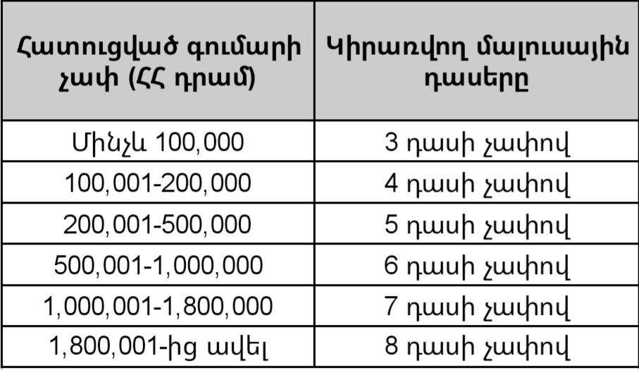 Բոնուս-Մալուսը 25 դաս ունի՝