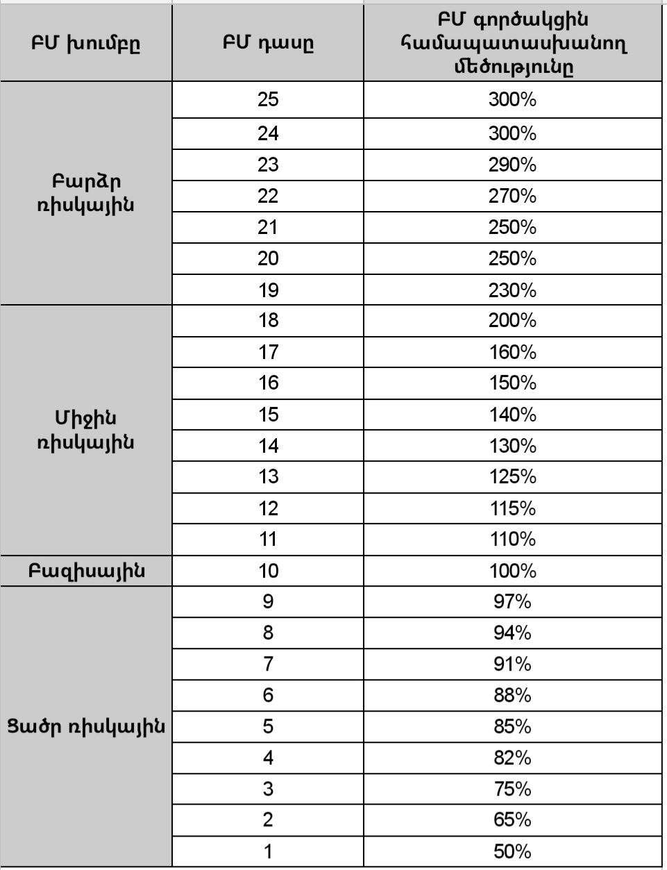 - 9-ը - բոնուսային (ցածր ռիսկային խումբ, որտեղ գործակիցը փոքր է 100%-ից)
