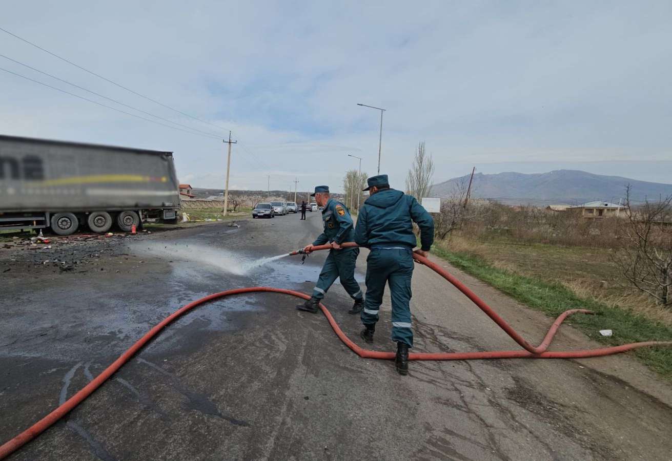Փրկարարները սահմանազատել են տարածքը, հոսանքազրկել «Iveco» մակնիշի բեռնատարը, Յ. Շ․-ի դին մոտեցրել շտապօգնության ավտոմեքենային և կատարել ճանապարհի լվացման աշխատանքներ։