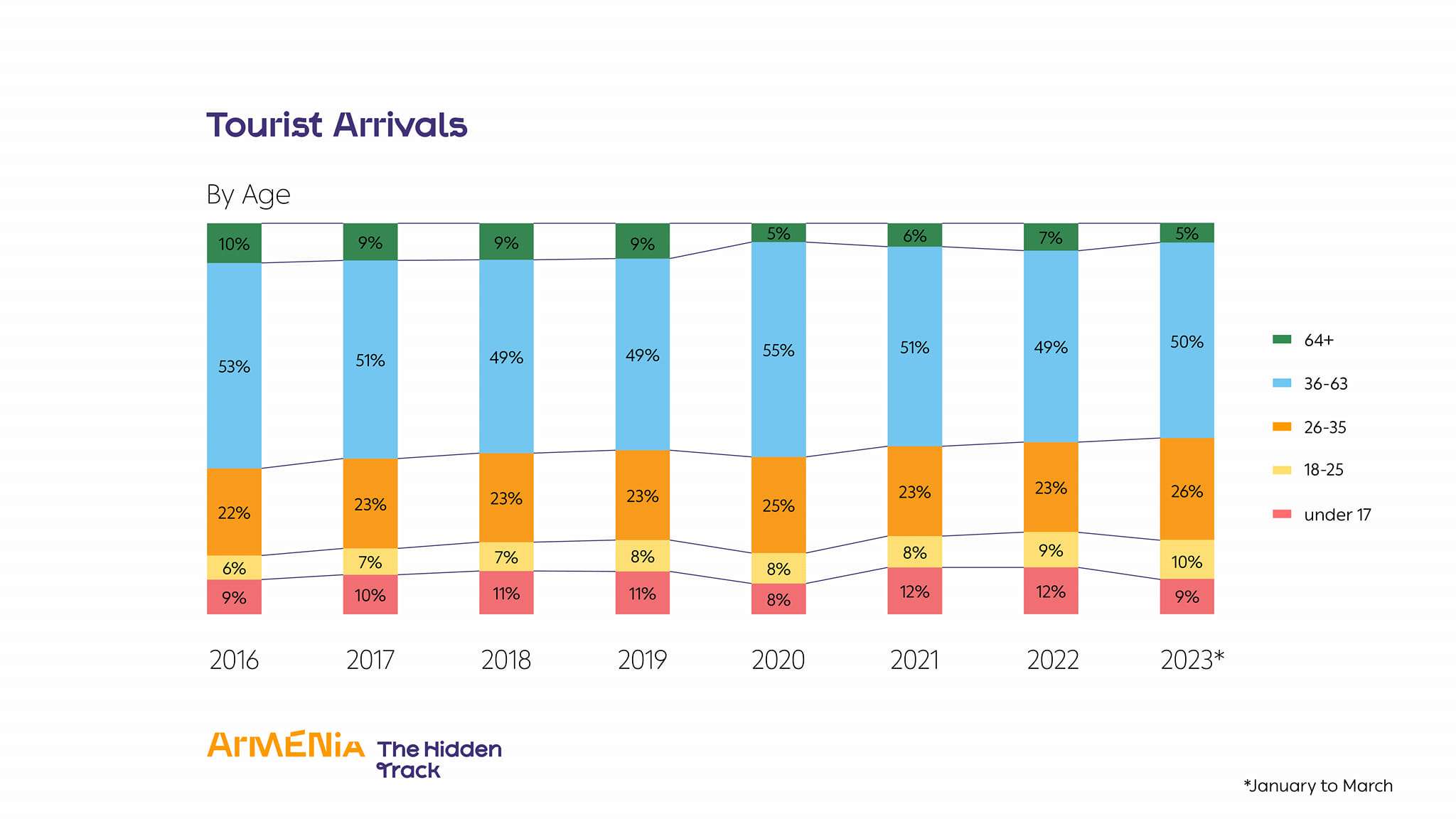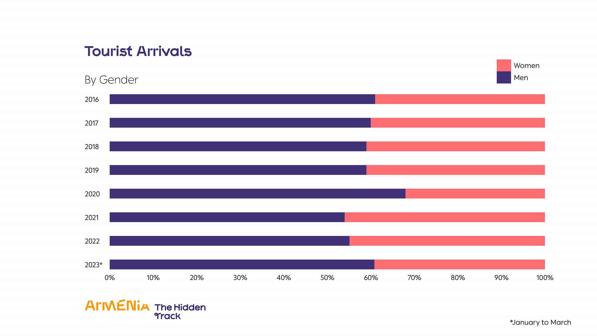 ՀՀ էկոնոմիկայի նախարարությունից տեղեկացնում են, որ համաձայն ՀՀ Զբոսաշրջության կոմիտեի տրամադրած տեղեկատվության՝ 2023 թ. հունվար-մարտ ամիսների ընթացքում Հայաստան եկած զբոսաշրջիկների թիվը կազմել է մոտ 450 հազար մարդ: Սա առավել քան 35%-ով ավել է 2019 թ․ նույն ժամանակահատվածի համեմատ։