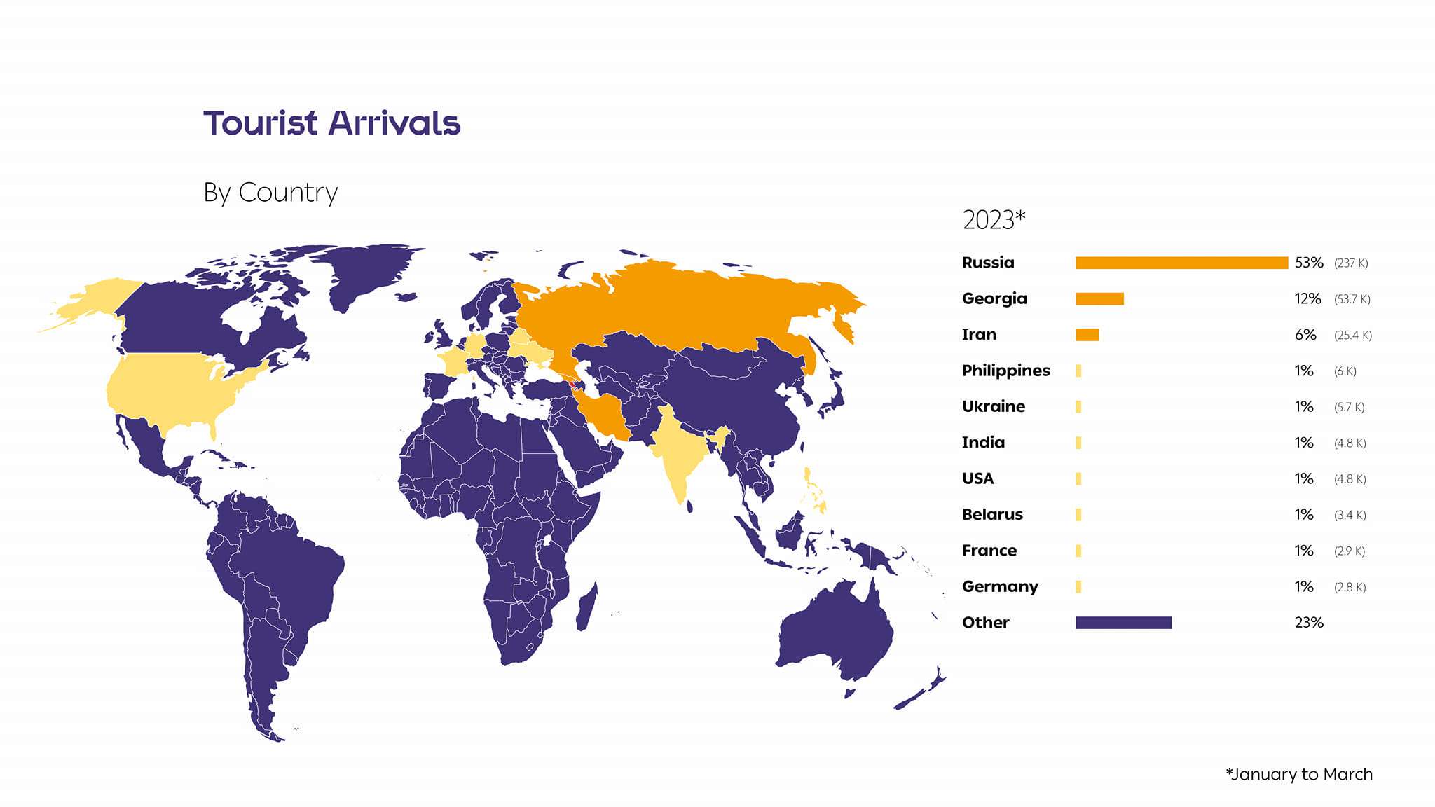 Զբոսաշրջության այցելությունների քանակով առաջին եռյակը շարունակում են մնալ Ռուսաստանը, Վրաստանը և Իրանը։