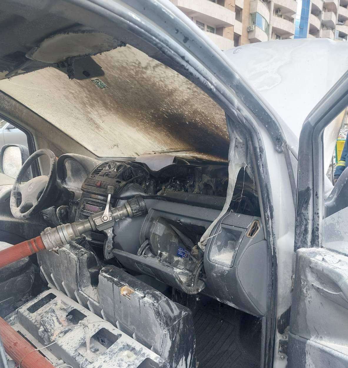 Հրդեհը մեկուսացվել է ժամը 18։07-ին, մարվել՝ 18։14-ին։ Այրվել են «Mercedes-Benz Vito» մակնիշի ավտոմեքենայի շարժիչի հատվածը և ցուցիչների վահանակը։