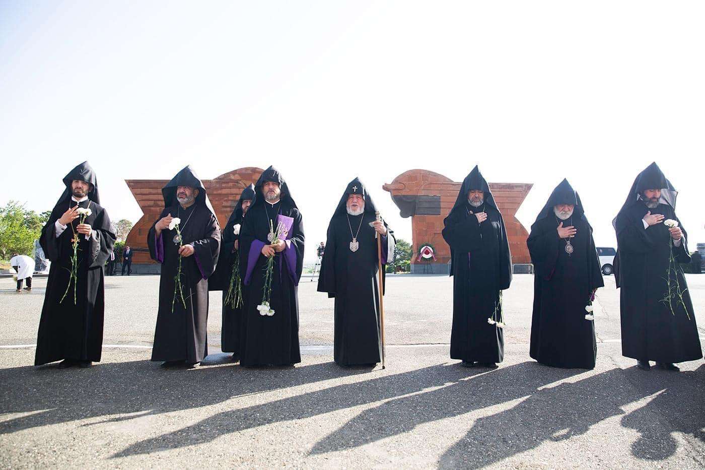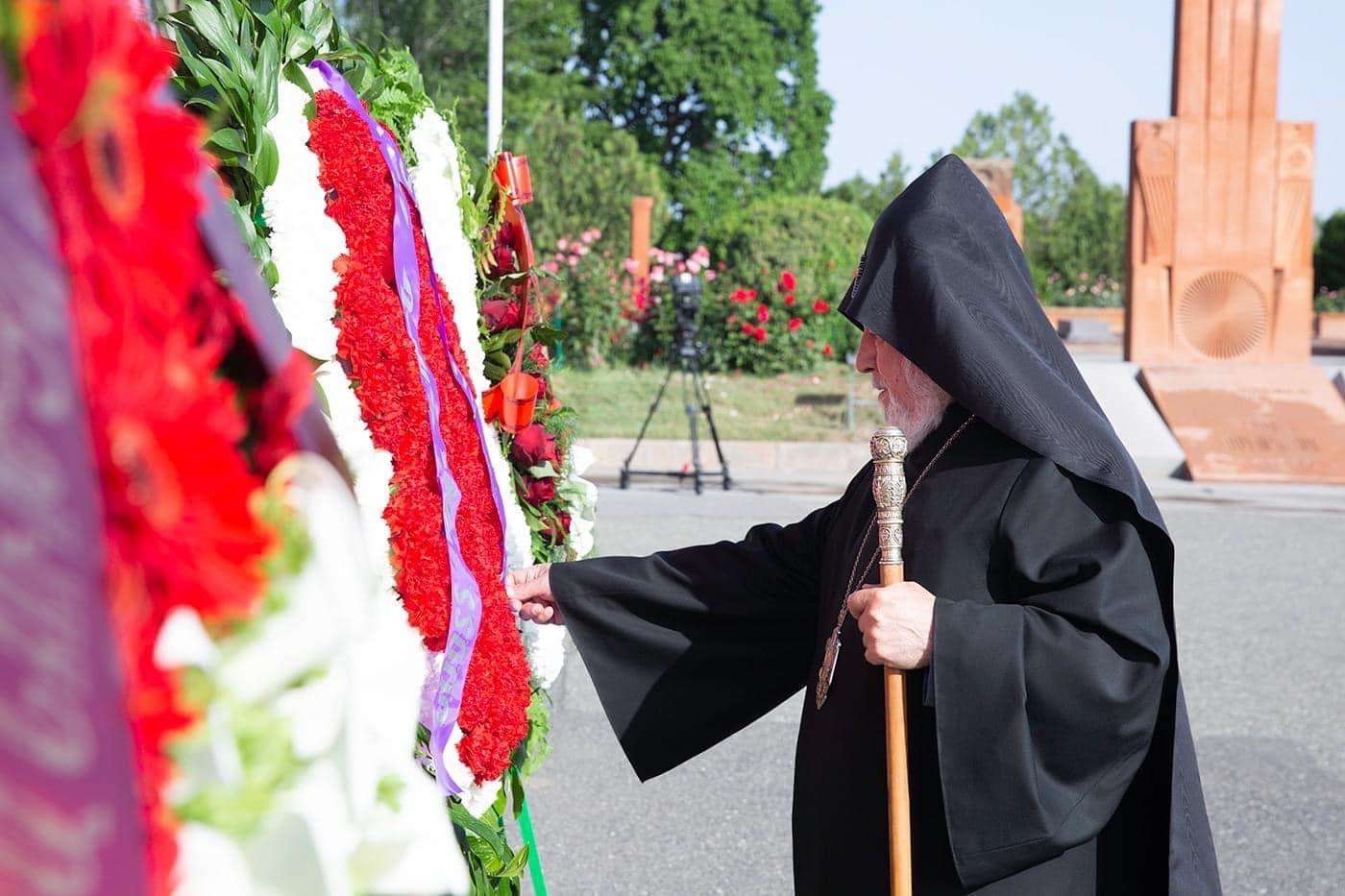 Ամենայն Հայոց Կաթողիկոսը ծաղկեպսակ զետեղեց հուշակոթողի առջև, ապա աղոթք բարձրացրեց հայրենյաց պաշտպանների հոգիների հանգստության համար: